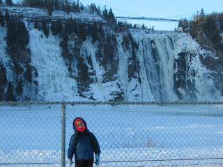 We brought some small presents the kids opened Christmas in the hotel, which was not bad being in a hotel on Christmas. I didn't have to worry about cooking or cleaning, just relaxing and playing! We went swimming in the indoor pool, that had a slide, skyped with grandparents, ate a rotisserie chicken heated in our room microwave, then went to Montmorency Falls and for a drive on Ile d' Orleans (Orleans Island in the river).