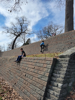 On Monday, I took advantage of our zoo pass and we went to Toledo with Austin, Erik, Kai, and her friend CJ. My mom hadn't been to the zoo in a while. We got a warm sunny spell that day and Toldeo is about 8 degrees warmer than Canton, so that was nice! All the indoor parts were closed because it was President's day, but we enjoyed the outdoors and the animals we could see there. Since we didn't spend time in the aquarium or the reptile house, where we usually spend a lot of time, we finished at the zoo much sooner than normal. So, we went to a nearby park and I can't believe how much fun these teens and preteens had there! It was a little slushy and very muddy, but we avoided getting too messy since we're all capable of that nowadays.